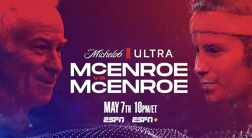 On May 7, Michelob Ultra and ESPN will pit John McEnroe against himself in a tennis match. It will be the first real vs virtual tennis match. McEnroe, now 63, will play against virtual avatars designed by AI and machine learning to look and play like five versions of the younger McEnroe at different stages of his career.
