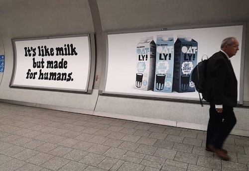 The ads continue to be created in-house. The OOH components will be supported by print, radio musical jingles, podcasts, experiential and sampling, PR, influencer and social activity. Oatly will also continue to run its Boxpark pop-up shop, allowing people to sample the plant-based milk.