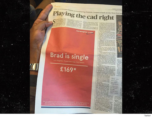 Grand Prix Press: Brad is Single by Try Norway, the tactial ad that used the separation of Brad Pitt and Angelina Jolie as a lure for ticket purchases to Los Angeles for airline company, Norwegian.