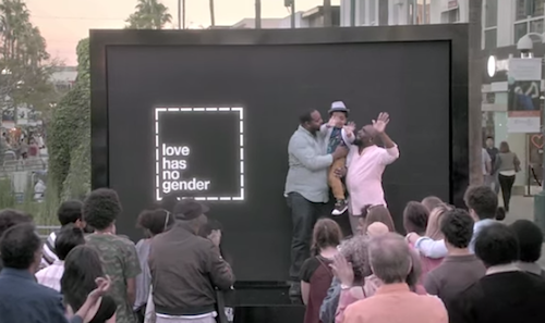 The campaign’s most recent launch is a three minute spot that was filmed (aptly) on Valentine’s Day in Santa Monica in California. The idea was to trigger people’s prejudices and bring them up to the surface of their brains for scrutiny. R/GA set up a giant X-ray screen behind which real twosomes of different genders, abilities and sexual orientations showed their affection for one another in various ways.