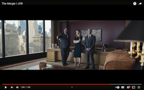The Merger, the latest iteration of That Jif’ing Good is a gripping bursiness drama that follows the merger of two fictional companies – The Peanut Butter Group and Chocolatey Corp. The 90-second film stars J. Smith-Cameron as the Peanut Butter Group CEO. In it, the “merger of the century” creates chaos in the business world, complete with a press conference, rivals accusing them of having a ‘monopoly on craveability’, and a large Jif product reveal event straight from ‘Spread Valley’.