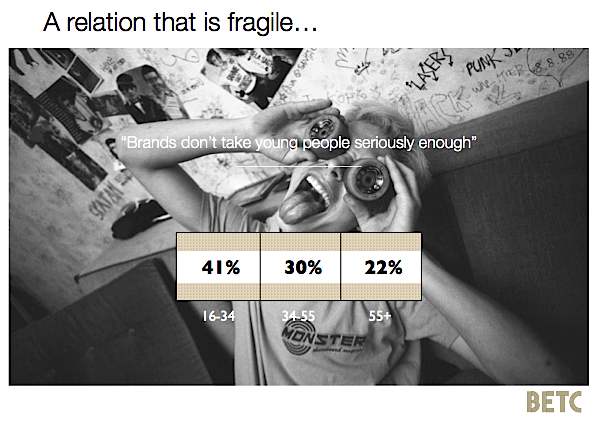 2. Brands don’t always hit their marks. 41% of young people think that brands do not present themselves in the right way (as opposed to 30% of 35-54s and 22% of over-55s).