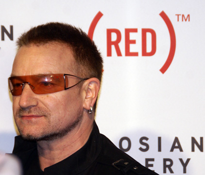 Bono co-founded (RED) with Bobby Shriver in 2006 to engage businesses and consumers to raise money and awareness in the fight against AIDS. 50% of the profits from (RED) branded goods and services go to the Global Fund to Fight AIDS, TB and Malaria for HIV/AIDS prevention and treatment services. So far that 50% equals more than US$250 that has heloed more than 40 million people with prevention, treatment, counselling, HIV testing and care services.