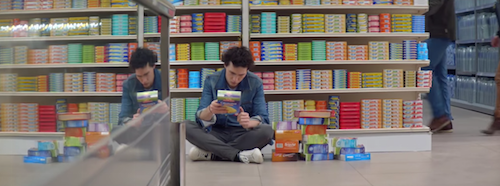 And the story is such a pleasure to watch. A young man, doing the grocery shopping with his flatmates, is struck by the cashier. He notices that she disapproves of their junk food purchases and begins to add fresh food on every shopping visit. To use the food, he teaches himself to cook. And his first attempts are endearingly awful. Of course – this being a classic French romantic film – boy gets girl, and the pair scooter off into the sunset.