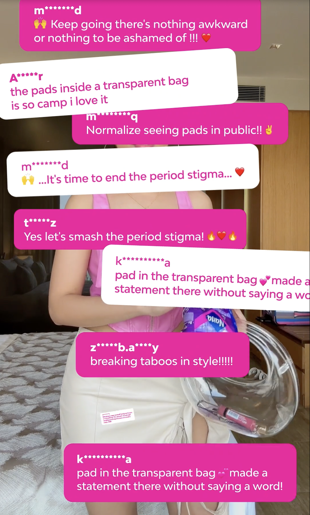 Their actions sparked a crucial conversation that went viral instantly, garnering almost 22 million views and over 23,000 comments online. In the middle of this buzz, the influencers unveiled the campaign’s true purpose – Taboo Totes as symbols for transparency in menstrual care, further fueling the debate.