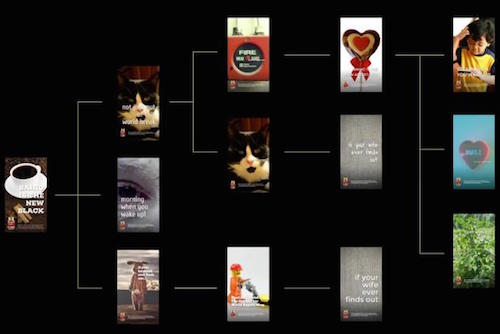 The deliberately boring (at first, at least) billboard for fictional product, Bahio Coffee, is powered by a genetic algorithm that tests different executions by analysing the strengths of more than 1,000 “genes” (read:features) such as copy, layout, fonts and font sizes and image.