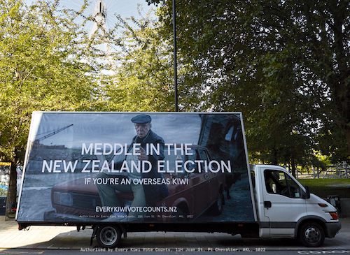 A series of films resulted, and these were used to incite meddling on a daily basis, over an 18-day enrolment and voting window. Like any good meddler, the campaign’s Russian, Viktor, took to Facebook and other social platforms to influence. He reached Kiwis through social groups, mobile billboards in Kiwi-populated parts of foreign cities like London, as well as getting his exploits written up in The Guardian UK, Sydney Morning Herald, ABC Australia, even SBS Russian.