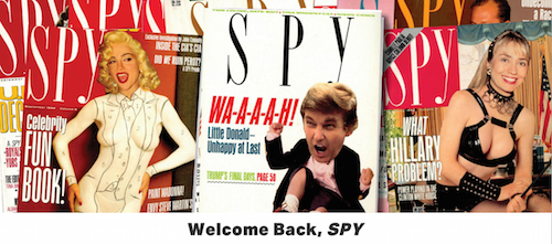 Spy magazine was a monthly satirical publication that ran between 1986 and 1998 that did then what Jon Stewart, Stephen Colbert and John Oliver did in the 2000s.