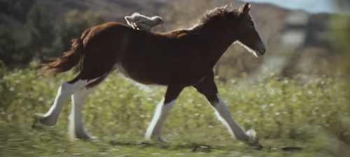 At this year’s Super Bowl, Budweiser is celebrating its 150th anniversary (and its 48th national appearance at the Game). Its 60-second commercial by BBDO NY and Draftline, the in-house agency for Anheuser-Busch, is called American Icons. It honours “the deep-rooted American heritage,” the brand says in its campaign blog and fits into Budweiser’s Made of America platform. It’s the story of as Clydesdale foal that befriends a baby Bald Eagle, looking after the bird that is struggling in the rain.
