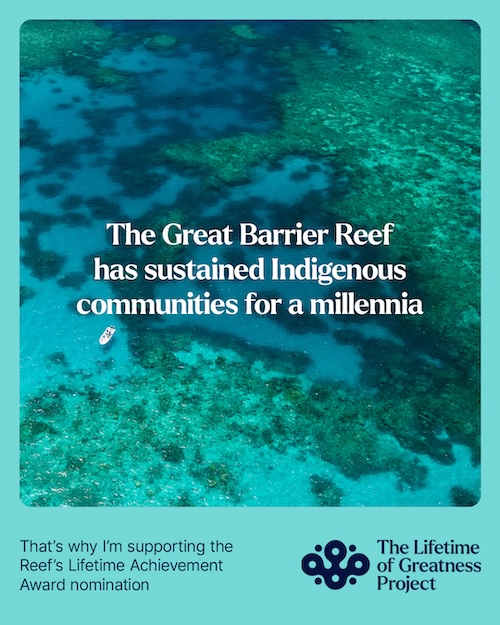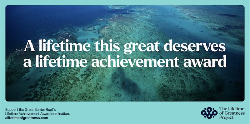 The Lifetime of Greatness Project is a global integrated campaign calling for the Great Barrier Reef to be recognised as the first non-human recipient of a Lifetime Achievement Award – the highest environmental honour from the United Nations Environment Programme’s (UNEP) Champions of the Earth Awards.