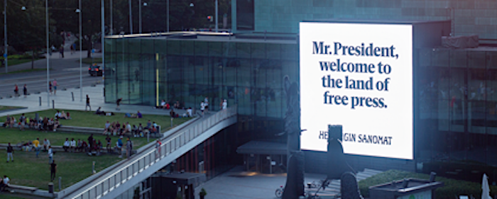 Helsingin Sanomat is committed to tackling climate change (as well as press freedom). In 2019, it appointed a climate correspondent to report on climate change. The same year the paper presented pens with ink made out of carbon dioxide to members of the Finnish parliament and G20 leaders to remind them of the urgency of climate action. The paper is already known for its The Land of Free Press campaign welcoming Trump and Putin to Helsinki in 2018. They previously handed The Climate Pen with ink made of CO2 to the G20 leader and the Finnish Parliament.