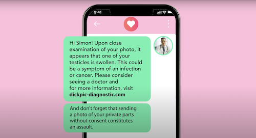 They created fake profiles of young women on dating apps. Then they waited. The dickpics appeared. The senders didn’t get the reply they wanted but they did get the reply they needed – accompanied by a friendly warning about the illegality of sending dickpics.