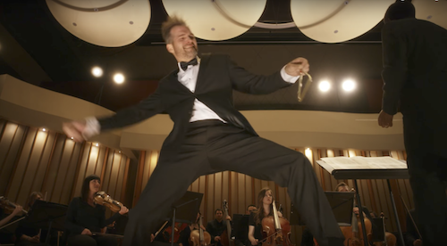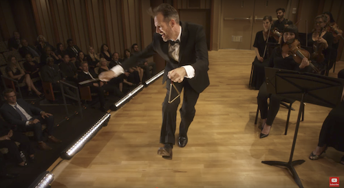 The latest spot’s surprise comes from a triangle player in an orchestra. He breaks free of the formality of a concert recital to do an impromptu rock star solo.