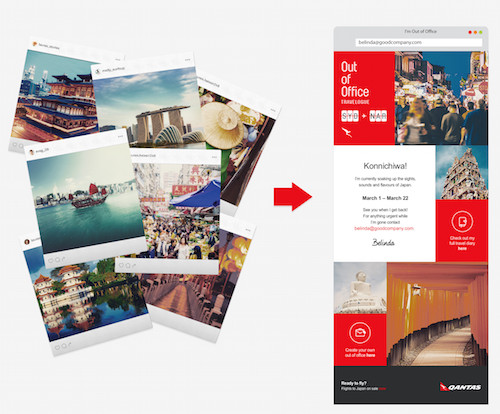 So the agency created the Qantas Out of Office Travelogue. It connects your email to your Instagram and updates your auto reply email with photos you select and tag with the hashtag #qantasoutofoffice. When someone emails you while you’re travelling, they’ll receive an email showing off the latest photos from your travels.