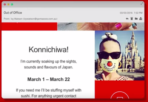 “We know that tips from friends and colleagues are the highest driver for people when choosing their next holiday destination, so we saw an opportunity to encourage travel through the millions of out of office emails being sent every day,” noted Olivia Wirth, Qantas group executive brand, marketing & corporate affairs.