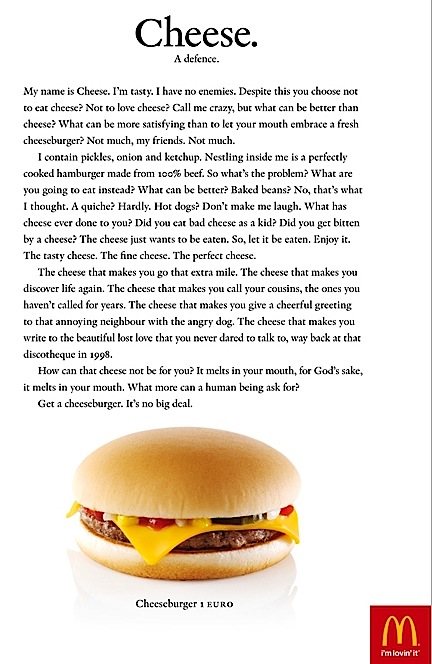 DDB Stockholm has given the long copy ad a go. For McDonald’s. (I’d add an exclamation mark, but that would be rude.) In fact, DDB Stockholm has given the long copy ad a second go. The first one was in September, for cheese. This one is for the pickle.