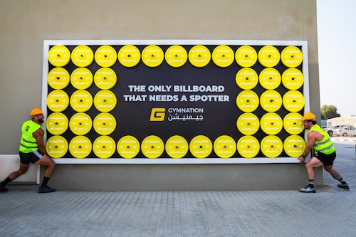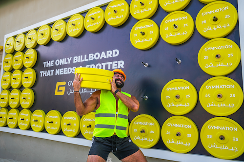 GymNation, the biggest gym chain in the Middle East, has turned heads this week, after claiming its new billboard in Dubai has broken all known weight records for an OOH advert. The billboard weighs 1 tonne and was created using forty weight plates joined together.