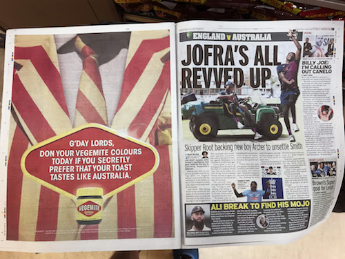 Vegemite is also offering a Marmite amnesty. “Any MCC members who turn up to Lord’s in their red and yellow Vegemite colours with a jar of Marmite, can then send the Marmite jar to us in Melbourne Australia, and we’ll swap it for a new jar of stronger, bolder Vegemite.”