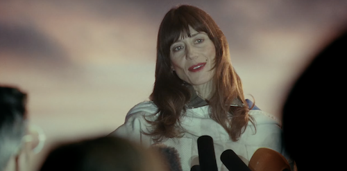 The film’s narrative is driven by questions which the different iterations of Sara has to face. When she finally sets foot on the moon, her achievement is overshadowed by a reporter asking, “What is the shade of your lipstick?”, while over in the delivery room, having given birth to triplets, the midwife remarks, “Your skin is so smooth – what’s your secret?”