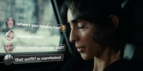 The hero film is supported by an outdoor and print campaign that challenges preconceptions and asks the viewer to look beyond what first meets the eye. In print, after turning a corner or flipping a page, the viewer sees what really lies behind the beautiful face on the billboard – the full person, defined by achievements and persona, rather than looks.
