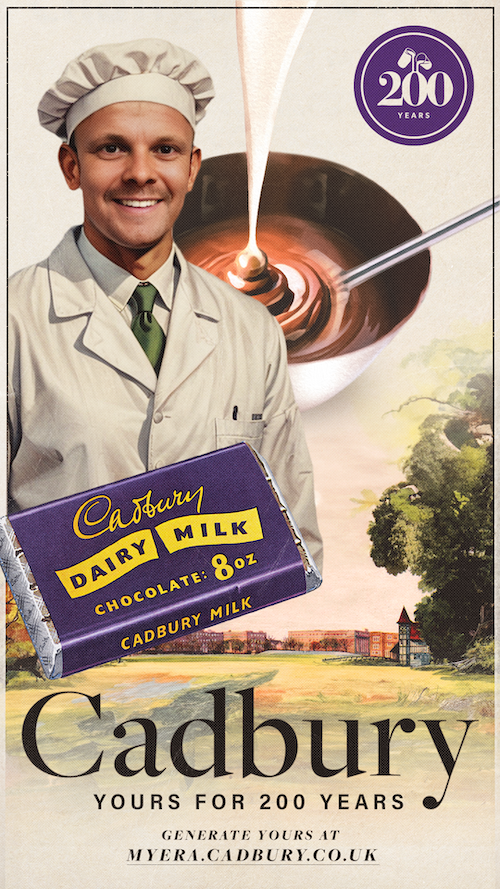 Cadbury’s 200th anniversary continues to build fandom, this time with a Gen-AI tool that allows fans to place themselves in heritage Cadbury posters.