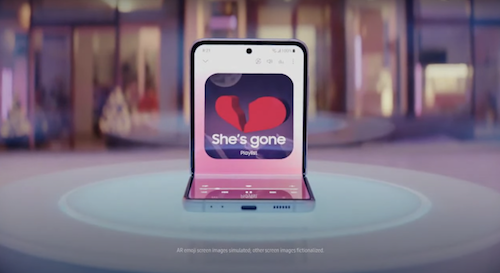 A young woman sees the new Samsung Z Flip3 Galaxy phone in a store window. She moves on but the phone has fallen in love with her and expresses its love with a broken heart and a heartbreak playlist, She’s gone. All the other Samsung devices join in the lovefest display. Wieden + Kennedy Amsterdam has invented a slightly clunky way for to show the Samsung range in one commercial – with The Backstreet Boys’ I Want it That Way playing in the background to give it a dash of emotion.
