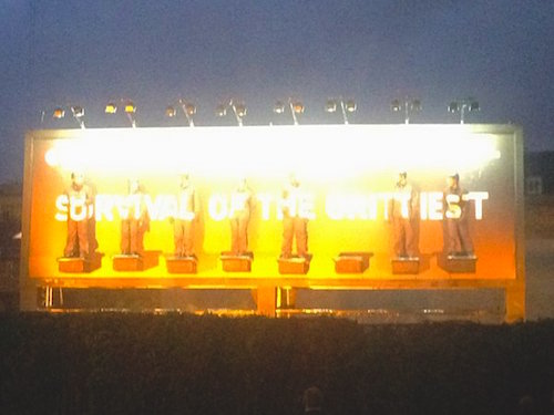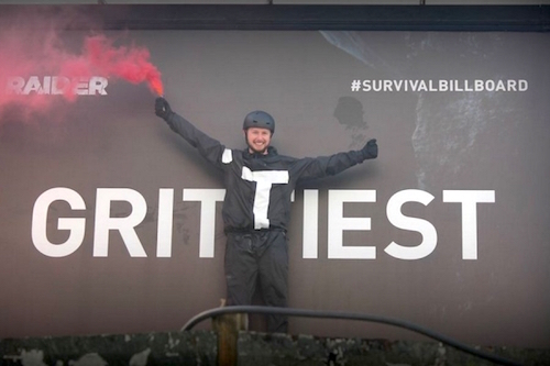 Viewers could watch their deterioration in real life or live. They were also able to vote for what kind of harsh weather conditions with which competitors were blasted next. The last person standing in the Survival of the Grittiest competition, Adam Carr, won “a trip inspired by Tomb Raider.” He’d endured 20.75 hours on the billboard.