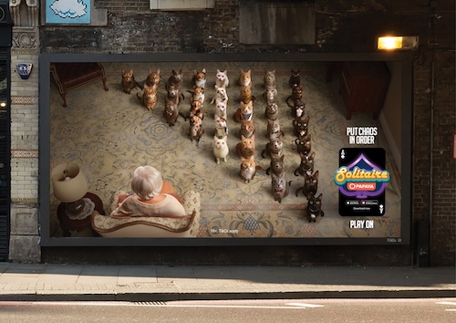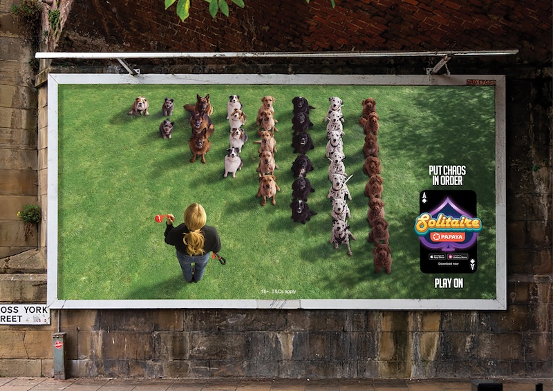 Got a thing for order? Papaya Solitaire’s campaign by London indie, You’re The Goods, has you in its grasp. The mobile sorting game, a modern version of the ancient card game, is making itself known with an eye-catching OOH campaign taking over major OOH sites in the UK, including London St Pancras and Manchester Piccadilly. Even if order isn’t your thing, the campaign will grab your attention.